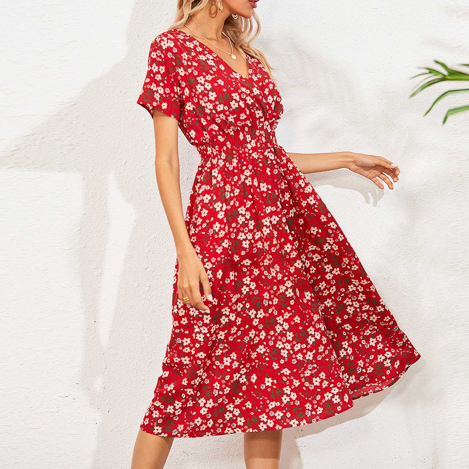 Cehvom Women Summer Casual Short Sleeve V Neck Floral Dresses Slim Dress Walmart Canada