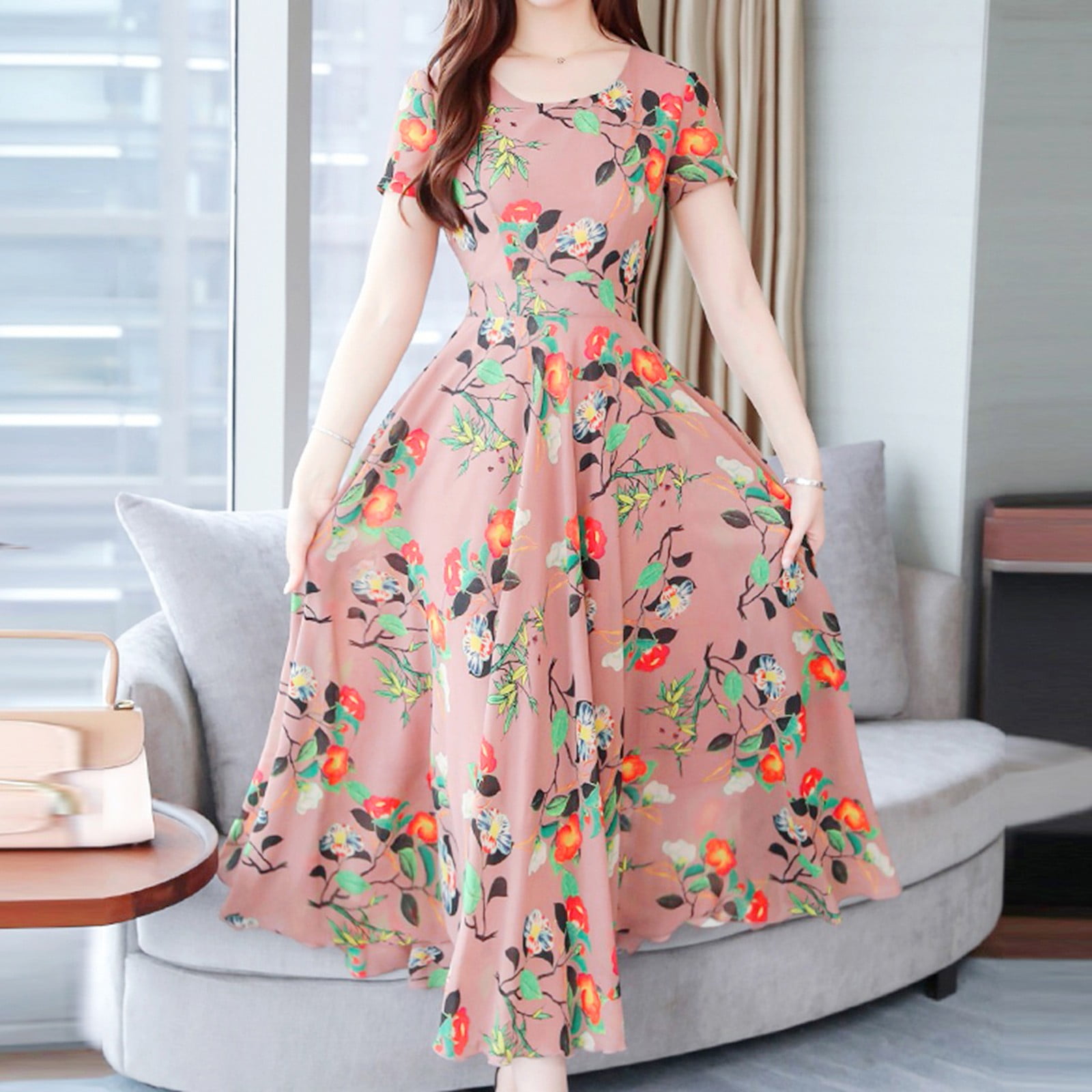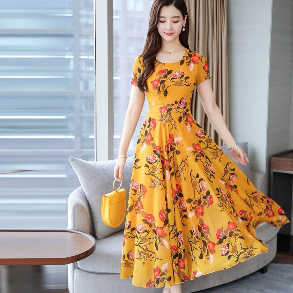 Jovati Women Fashion Summer Mid Calf Dresses Short Sleeve Beach Printing Beach Dresses For Women 2022 Walmart Canada